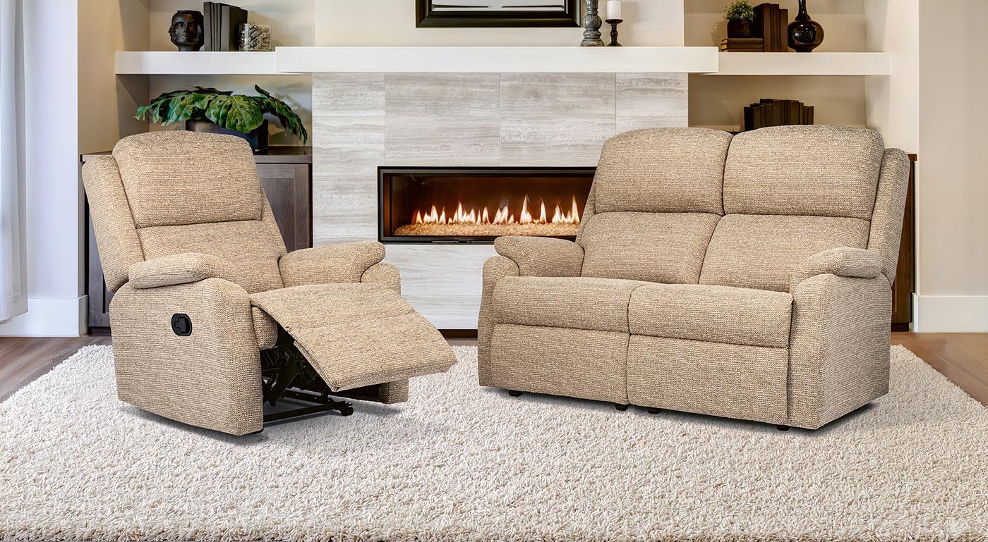 Exciting, contemporary Recliner/Suite featuring a soft padded-arm design and welcoming backs for extreme comfort and aesthetic good looks. The Standard size includes a popular Lounger 2-seater option as well as a regular 2-seater size, with matching Riser Recliners available in both Small and Standard sizes. All Powered Recliners and Reclining Settees incorporate a relaxing, innovative 'CLOUD' action for enhanced comfort, with additional Head Tilt and Lumbar Adjustment options which are also offered on both Riser Recliners.
